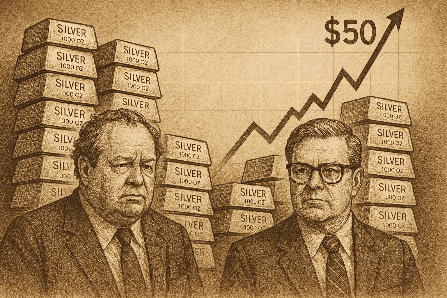 La historia de los hermanos Nelson Bunker Hunt y William Herbert Hunt es una de las más asombrosas del capitalismo moderno. Dos herederos del petróleo que, temiendo la inflación y la pérdida de valor del dinero, decidieron refugiar su fortuna en plata… hasta el punto de intentar acapararla toda.