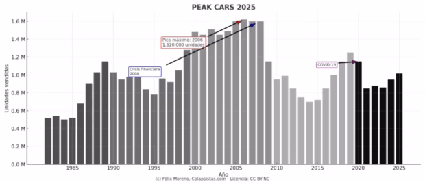 Y por recordar también, es muy interesante la correlación entre PEAK MEMORY y PEAK CARS, donde por ejemplo España ha habido cierta recuperación pero sin llegar ni de lejos a los máximos coincidiendo con el millón de barriles diarios de crudo que están aguantando aun la caída.
